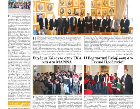 Στον “Αλεξανδρινό Ταχυδρόμο” του Δεκεμβρίου 2024 συμπεριλαμβάνεται και το Επετειακό Τεύχος μέχρι και την Εορτή των Θεοφανείων. Καλή Χρονιά σε όλους! ΣΕΛΙΔΑ 2 ΣΕΛΙΔΑ 3 ΣΕΛΙΔΑ […]