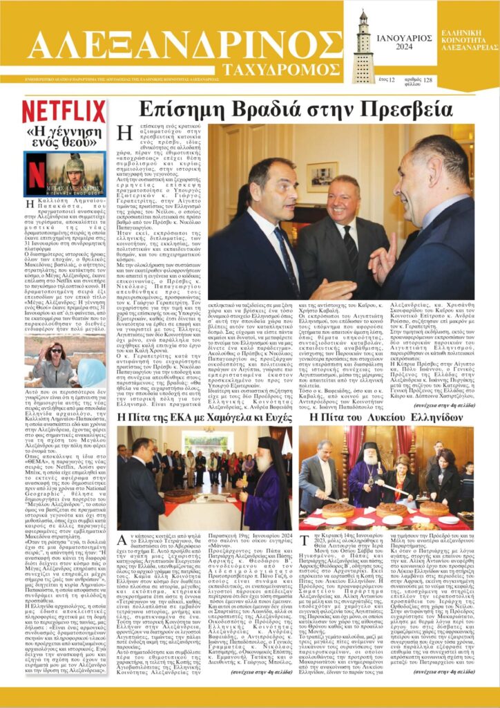 Αγαπητοί αναγνώστες του «Αλεξανδρινού Ταχυδρόμου», Όπως γνωρίζετε στην ιστοσελίδα της Ελληνικής Κοινότητας Αλεξανδρείας, σε καθημερινή βάση αναρτάται ειδησεογραφία που άπτεται θεμάτων και συμβάντων της Παροικίας μας, […]