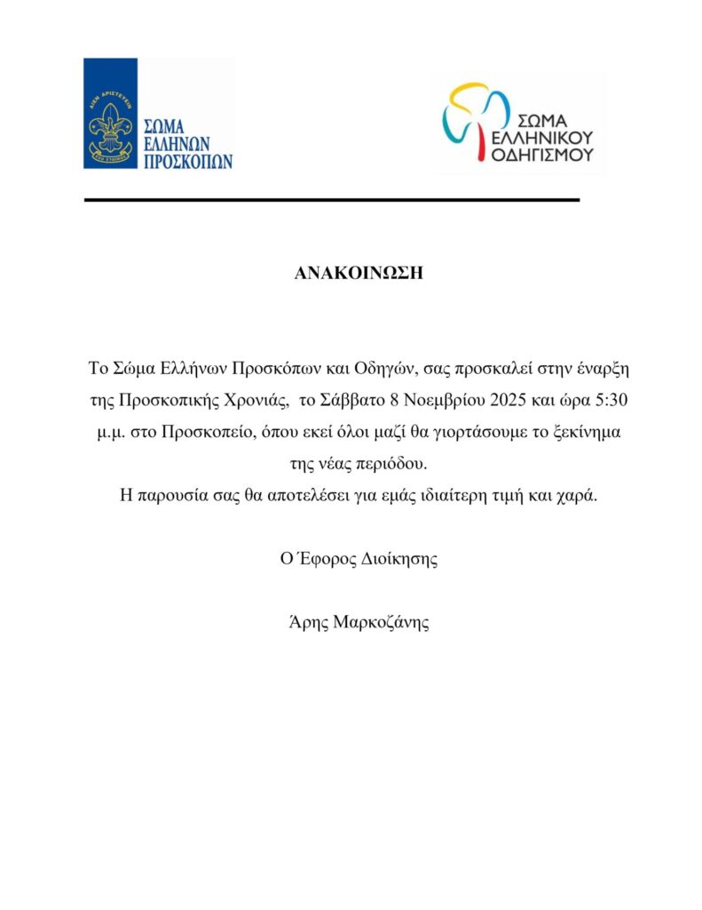 Ανακοίνωση Προσκόπων Οδηγών Αλεξανδρείας