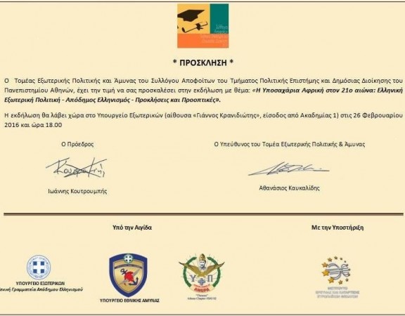Ημερίδα με θέμα «Η Υποσαχάρια Αφρική στον 21ο αιώνα: Ελληνική Εξωτερική πολιτική – Απόδημος Ελληνισμός – Προκλήσεις και Προοπτικές», διοργανώνει ο Τομέας Εξωτερικής Πολιτικής και Άμυνας […]