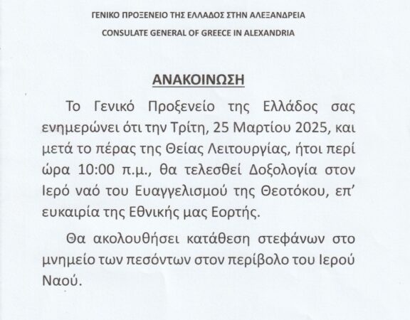 ΓΕΝΙΚΟ ΠΡΟΞΕΝΕΙΟ ΤΗΣ ΕΛΛΑΔΑΣ ΣΤΗΝ ΑΛΕΞΑΝΔΡΕΙΑ