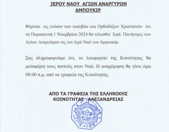 Εορτή των Αγίων Αναργύρων στο Αμπουκίρ
