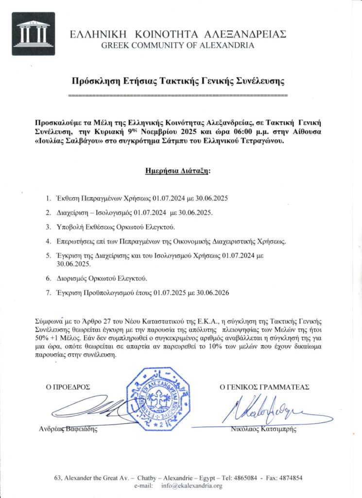 Η Ετήσια Τακτική Γενική Συνέλευση της ΕΚΑ
