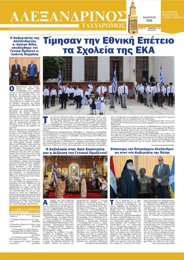 Ο “Αλεξανδρινός Ταχυδρόμος” Μαρτίου 2026