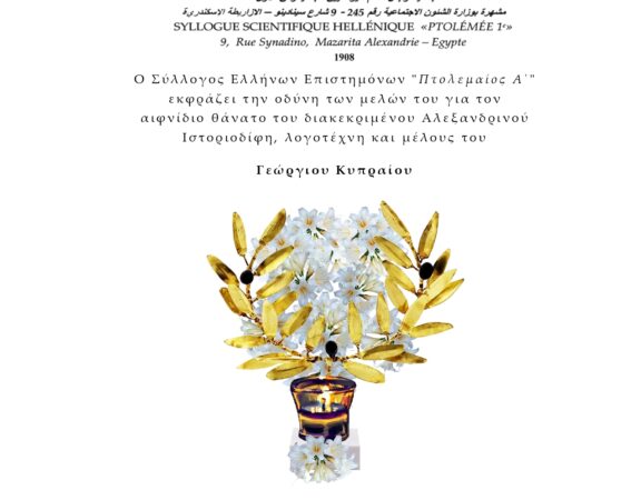 Η παρούσα αποχαιρετιστήριος επιστολή προς την εφημερίδα μας, εστάλη εκ μέρους του Πτολεμαίου Α΄, λίγες ημέρες μετά την αποδημία του αείμνηστου Γιώργου Κυπραίου, και τη δημοσιεύουμε […]