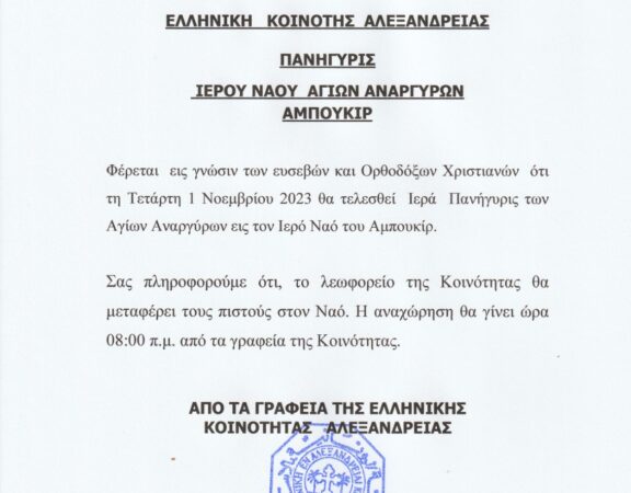 Πανήγυρις Ιερού Ναού Αγίων Αναργύρων Αμπουκίρ