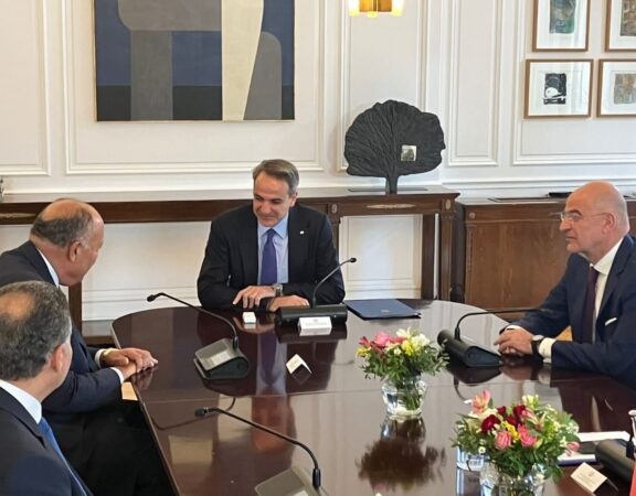 Εγκάρδια συνάντηση Σούκρι – Μητσοτάκη – Δένδια