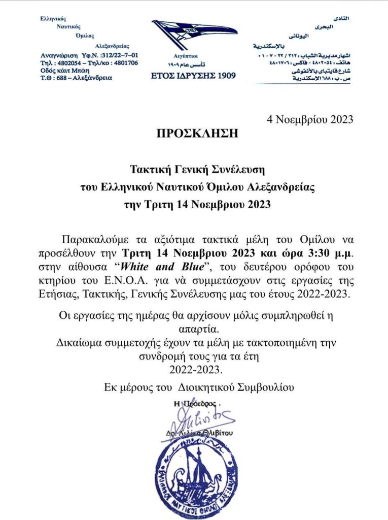 ΠΡΟΣΚΛΗΣΗ ΣΥΝΕΛΕΥΣΗΣ ΕΝΟΑ